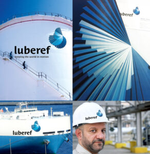 A bird in motion‭, ‬formed from industrial cogs‭, ‬serves as Luberef's logo‭. ‬The design embodies innovation‭, ‬energy‭, ‬and precision‭, ‬mirroring the company’s industrial expertise and dynamic vision‭.‬