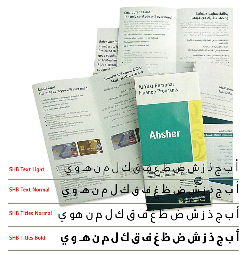 عمل البنك السعودي الهولندي، المعروف حاليًا باسم البنك الأوّل، على تعزيز توحيد هويته البصرية من خلال تطوير عائلة خطوط عربية تتناغم مع خط Univers اللاتيني المعتمد.